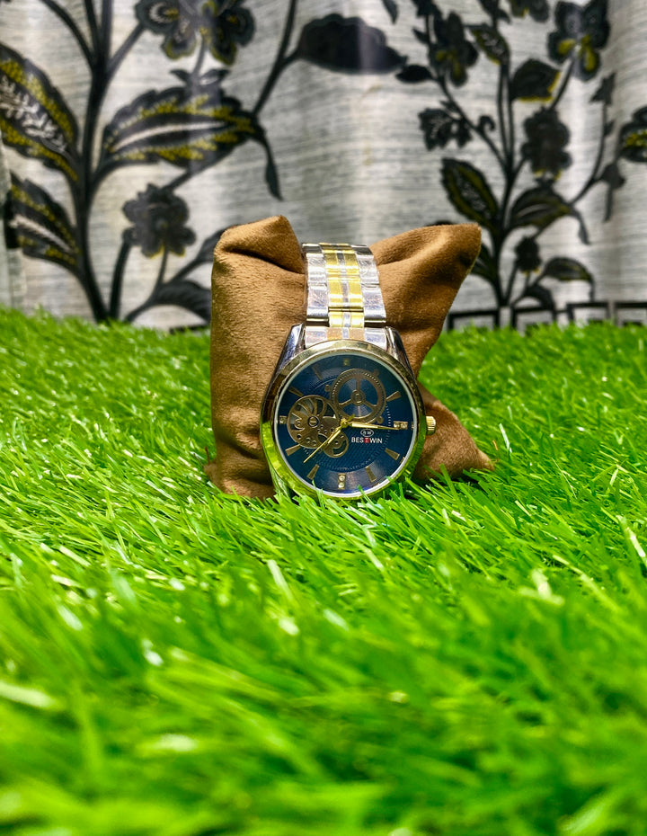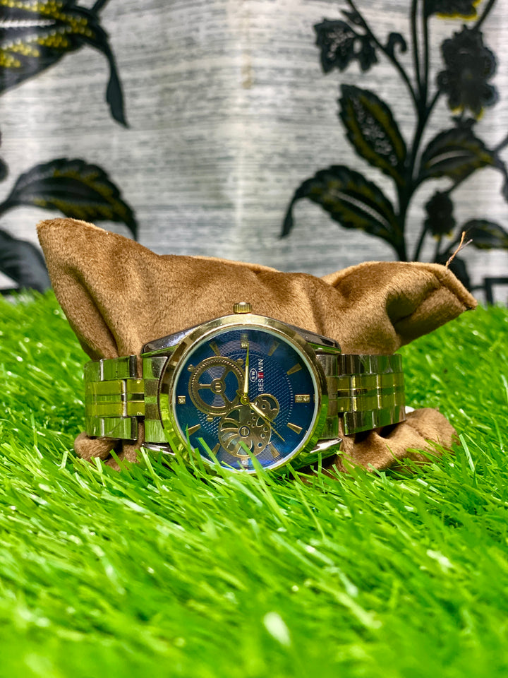 Royal Mechanica ek premium luxury wristwatch hai jo style aur technology ka perfect combination hai. Iska blue skeleton dial andar ke mechanism ko showcase karta hai, jo har nazar ko apni taraf kheench leta hai. Stainless steel strap isay ek royal aur timeless look deta hai, jo casual aur formal dono outfits ke sath match karta hai.